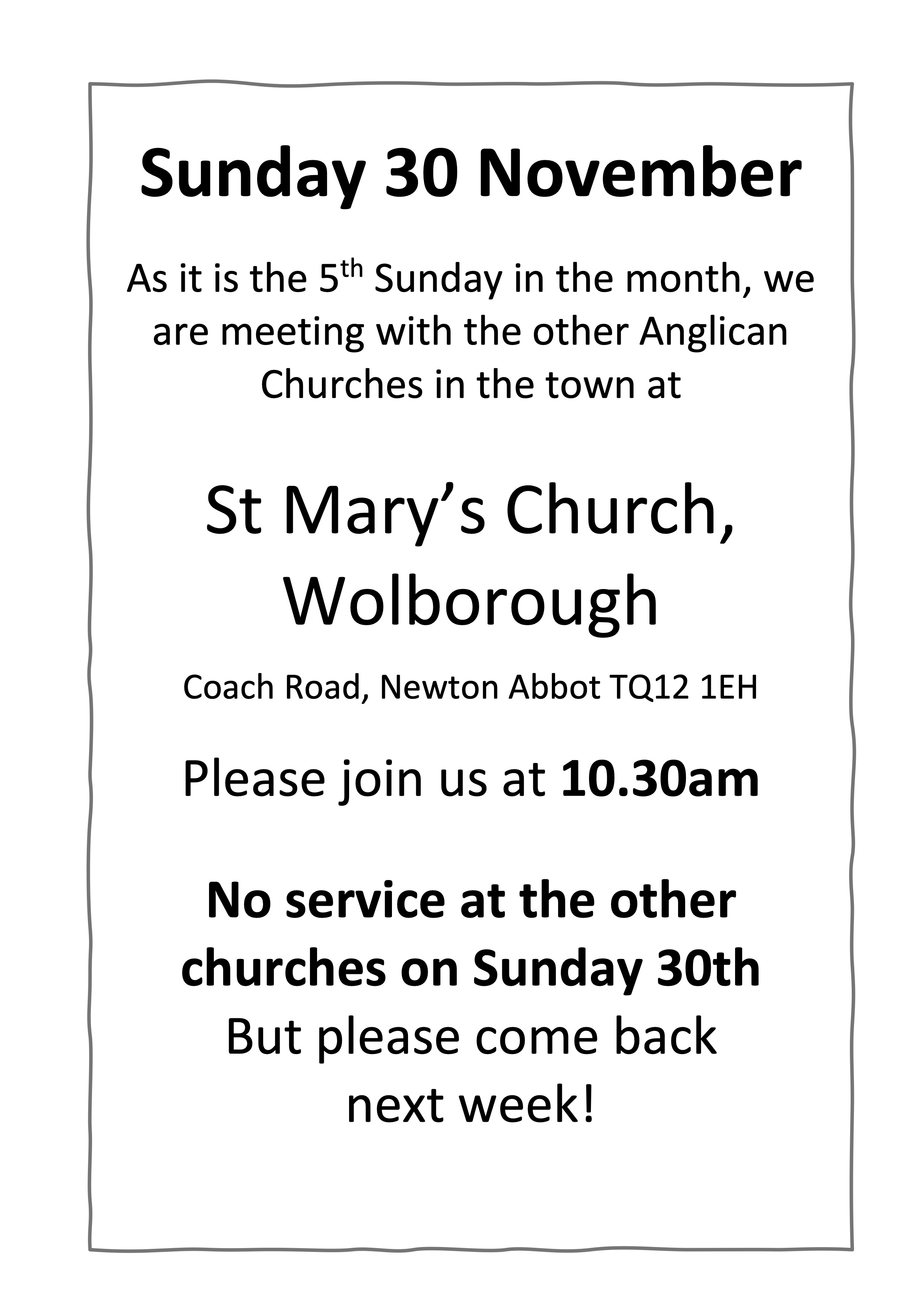 We are 2 Parishes: 5 churches in the Parish of Newton Abbot and Ogwell and 1 in the Parish of Milber. Tell me more!